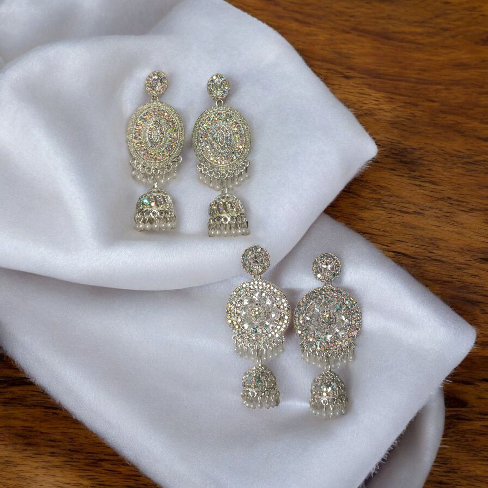 Grand Silver Plated Crystal Studded Chandbali Jhumka Earrings for Women And Girls - Wedding and Festive Party Wear