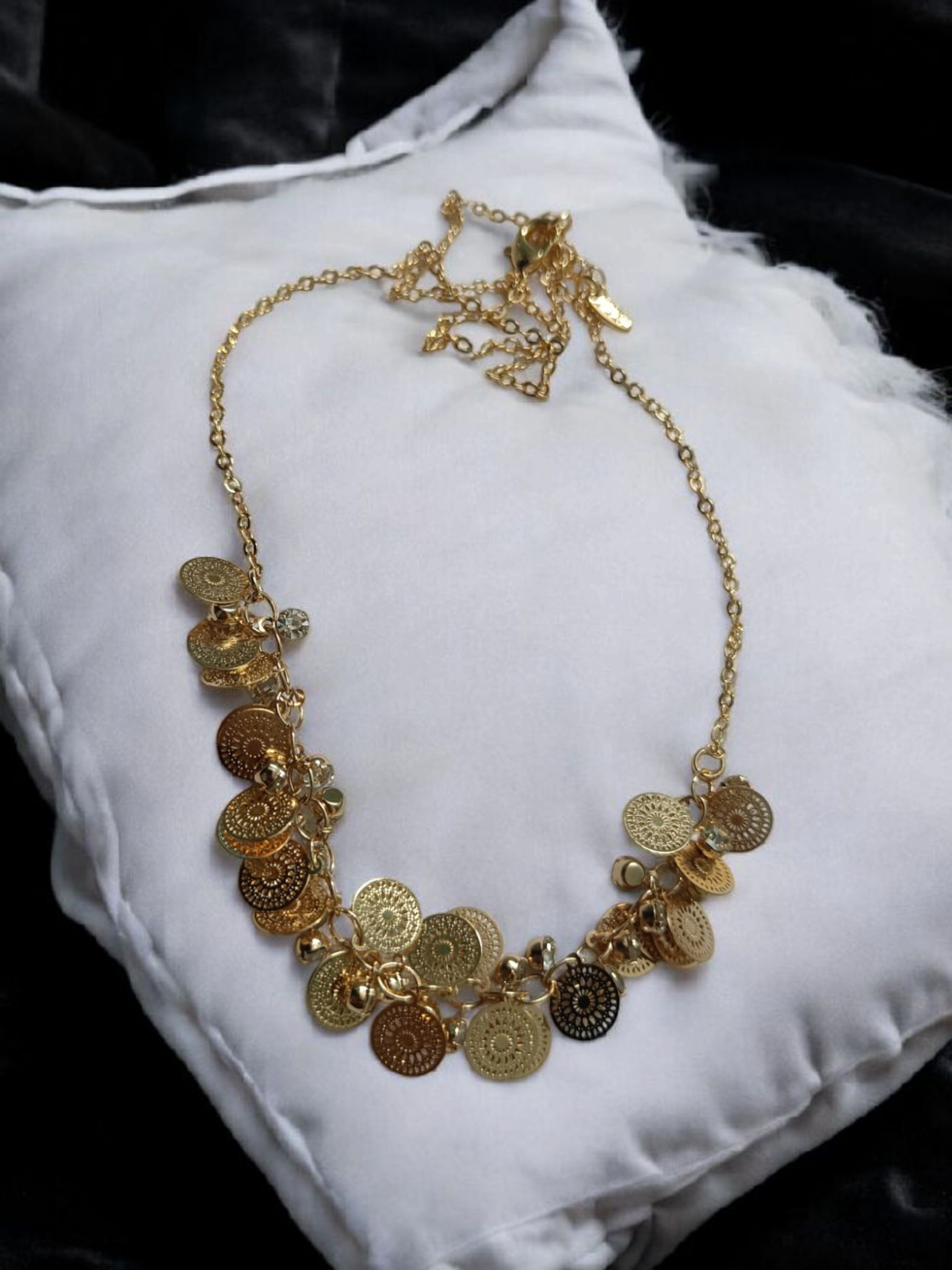 Elegant gold plated bracelet designed with stylish engraved coin charms