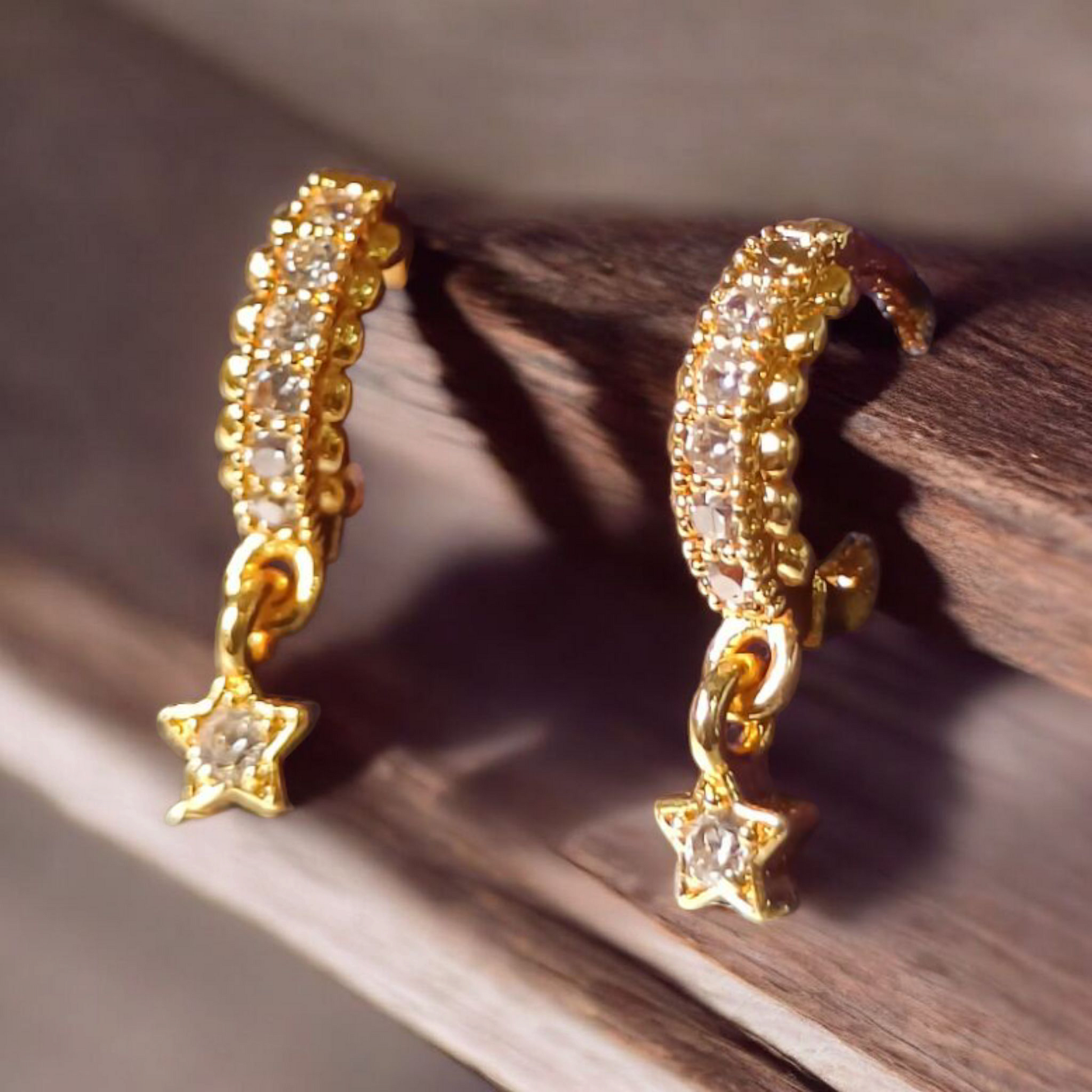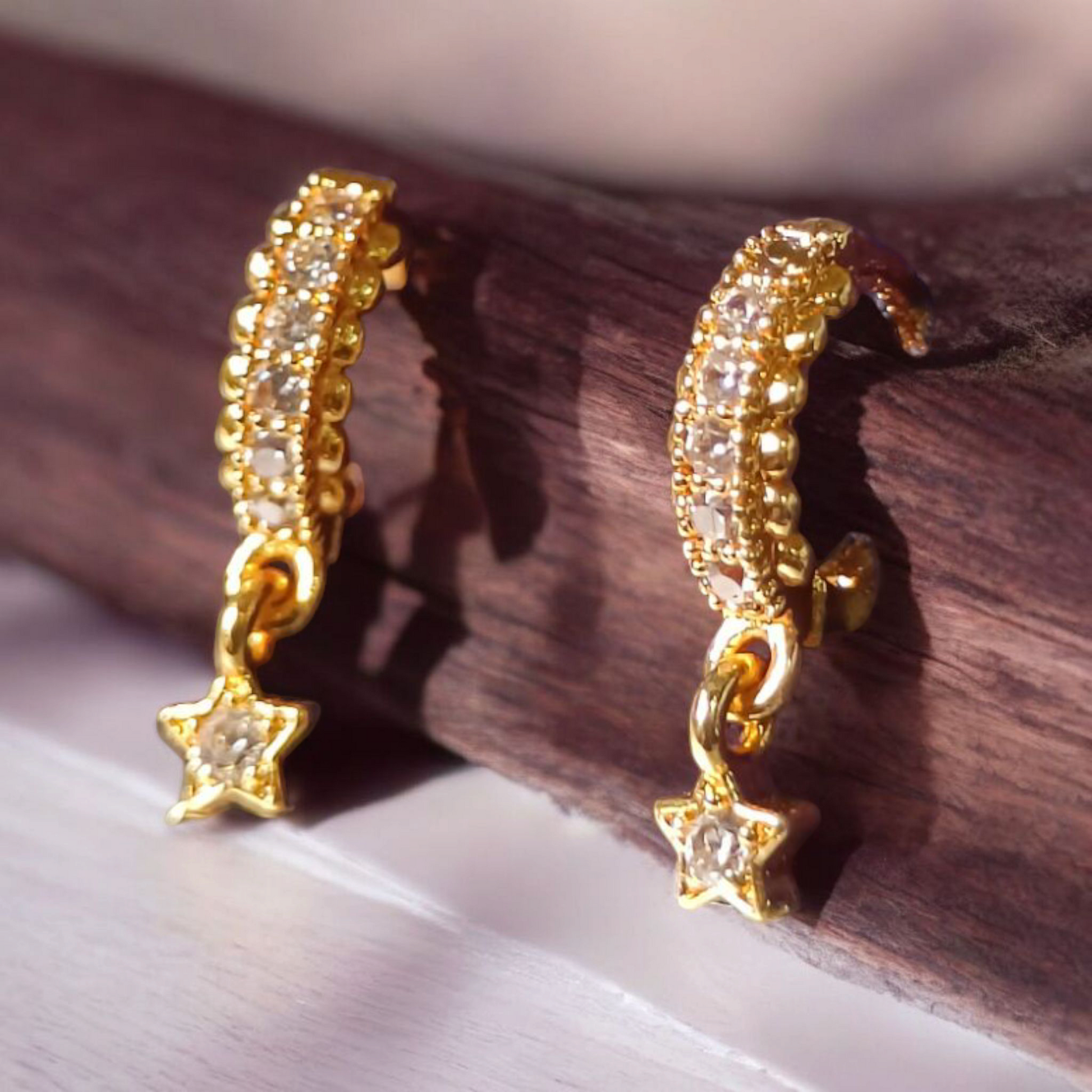 Trendy Gold-Plated Dangle Earrings with Crystal Stones